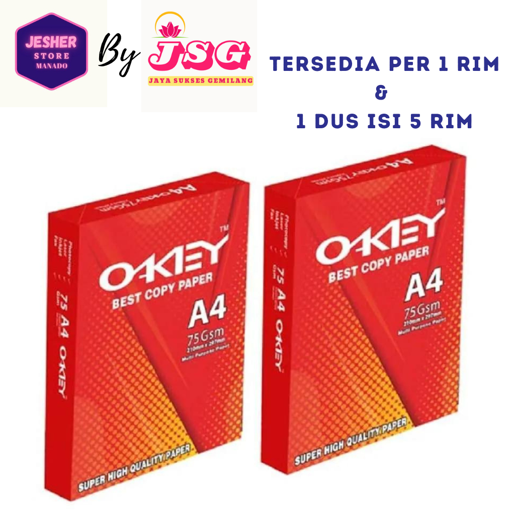 - Kertas Fotocopy atau kertas HVS Okey 75 gsm berukuran A4 dengan harga Ekonomis namun berkualitas.