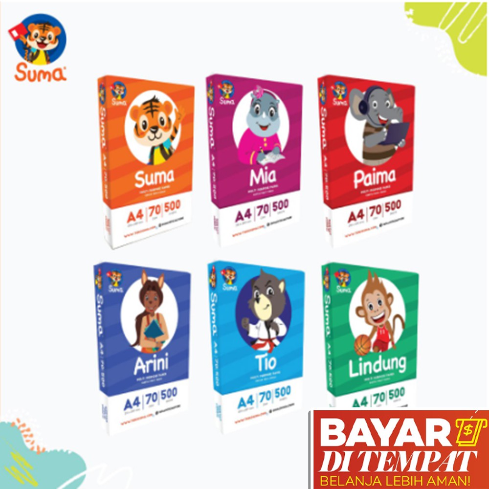 Kertas A4 SUMA hadir dengan beberapa karakter desain di pembungkus kertas HVS :