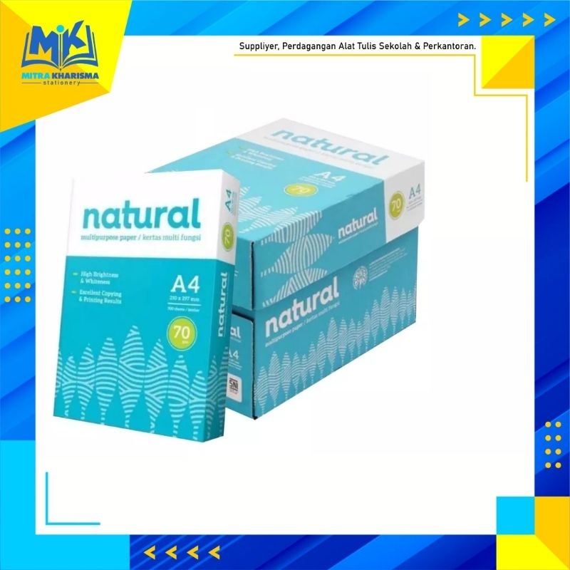 Kertas HVS merk Natural memiliki kualitas yang baik dengan harga yang terjangkau. Kertasnya putih dan gramatur tiap lembar sama sehingga sangat nyaman digunakan. Cocok digunakan untuk mesin printer dan fotocopy