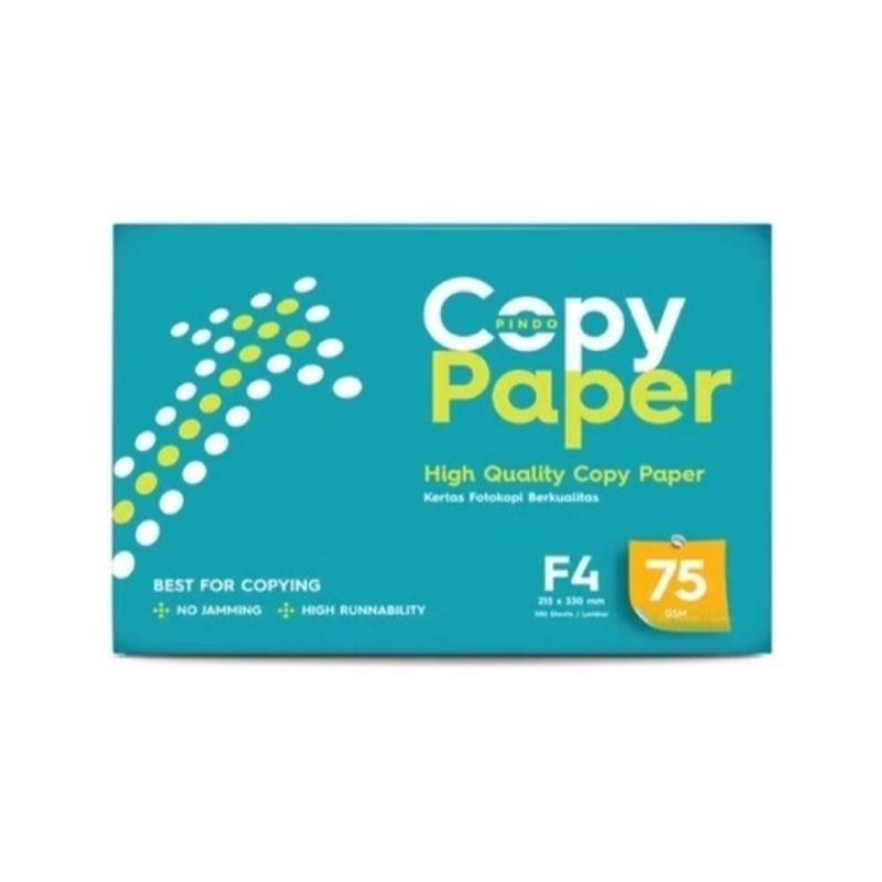 Kertas HVS F4 75gr merk Copy Paper. Minimal pembelian 1 rim (isi 500 lembar).