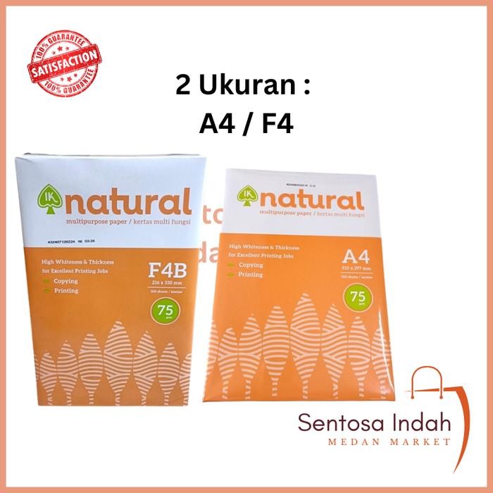 Jenis Kertas : HVS Merek : NATURAL Ukuran : F4 / A4Ketebalan : 75gr Isi : 500 lembar / Rim Harga Untuk 1 RimMohon lakukan video pembukaan paket dan foto resi di paketnya sebagai SYARAT WAJIB jika terjadi komplain, jika tidak ada maka akan sulit diprosesProduk rusak / pecah dalam proses pengiriman dapat diklaim ke pihak ekspedisiSentosa IndahMedan Market