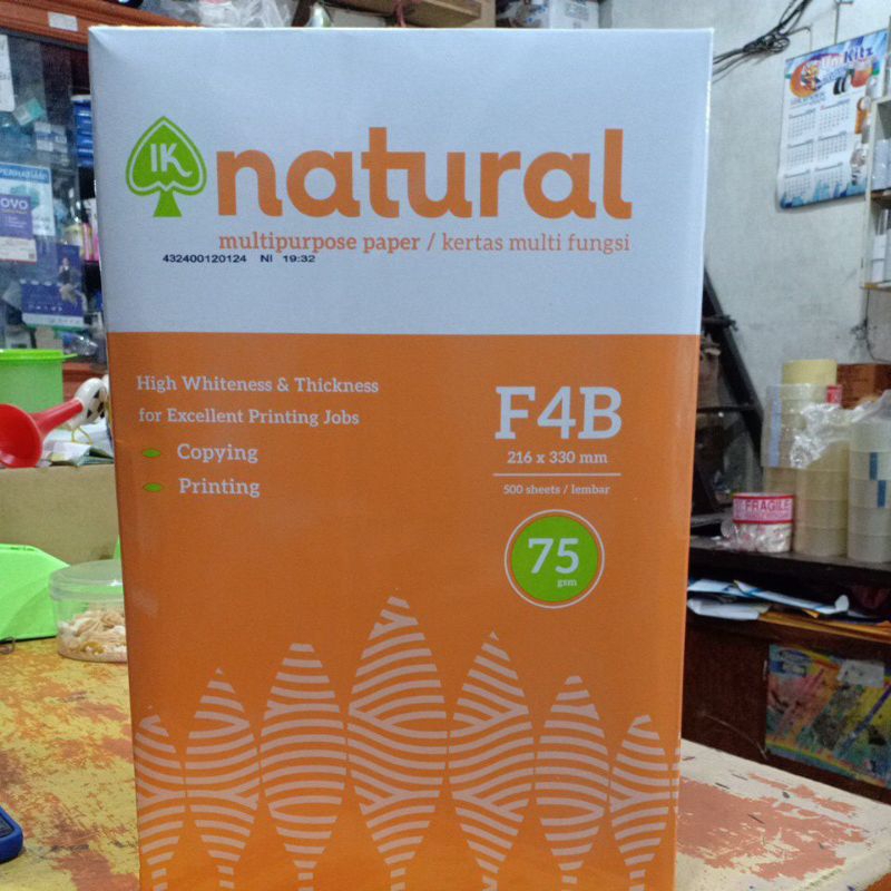 Kertas Hvs A4 / F4 Natural 75 Gsm(1 Rim)