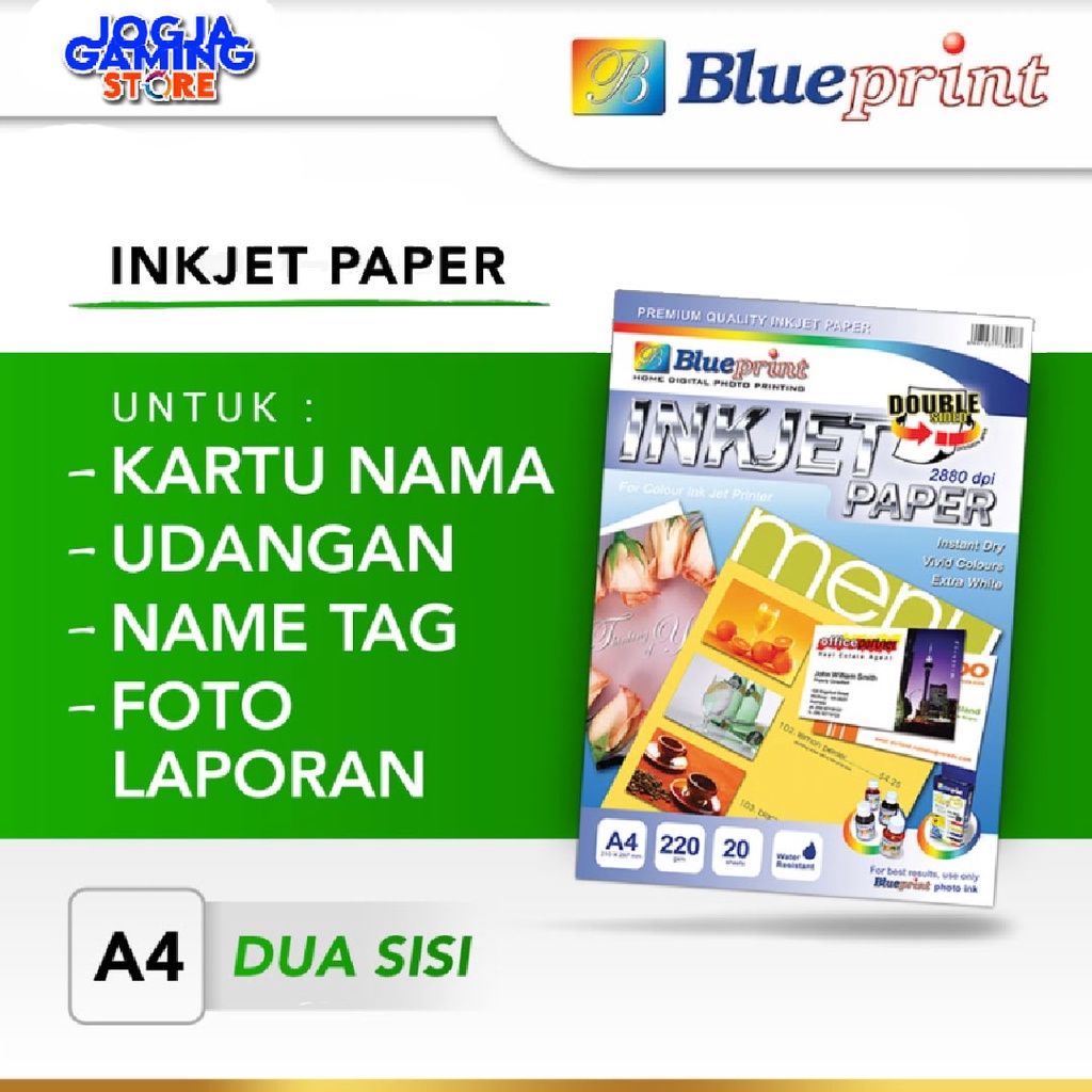 Deskripsi BLUEPRINT Kertas Inkjet Double Sided A4 220 gsm - Putih