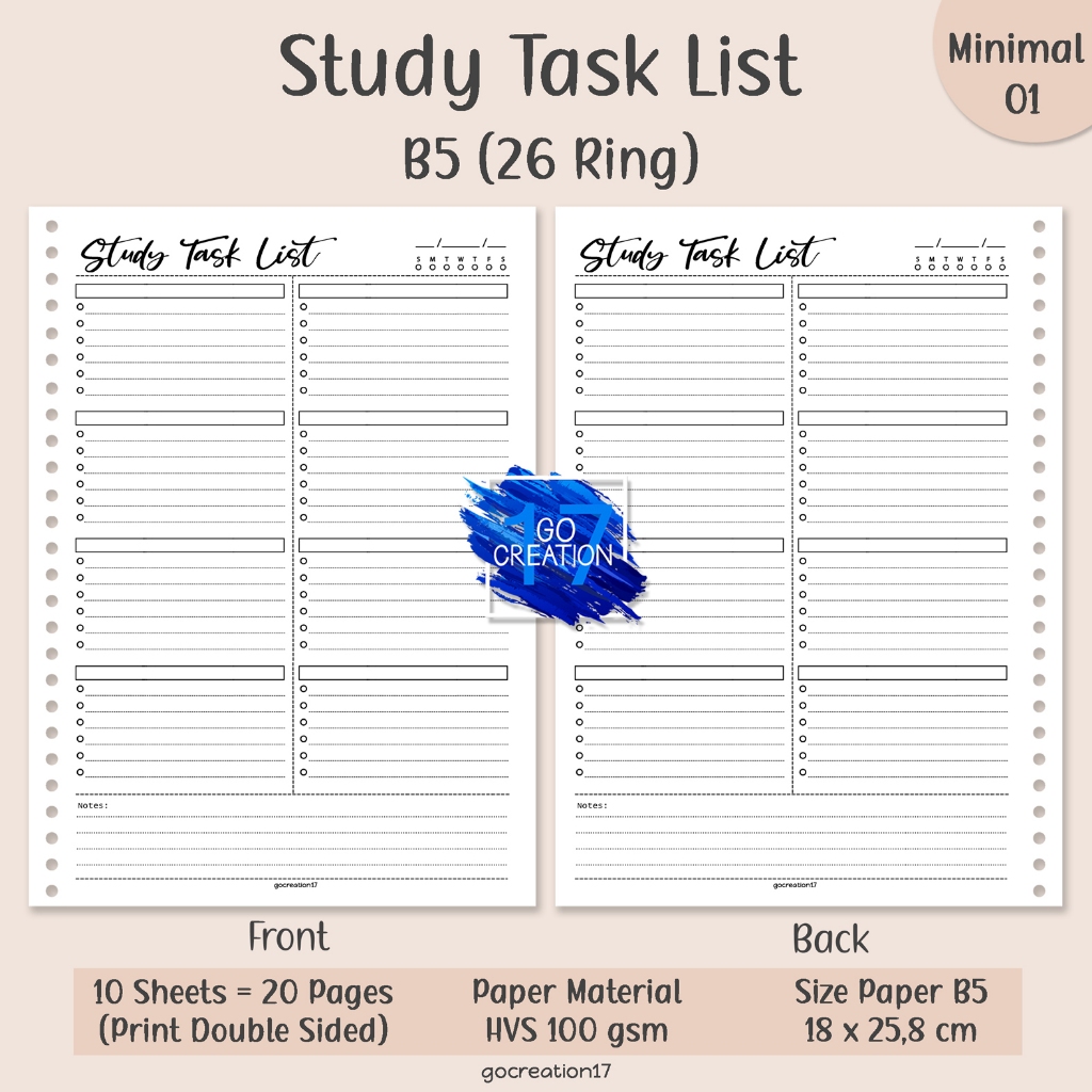 Kertas Isi Binder Planner Study Task List Simple Minimalis B5