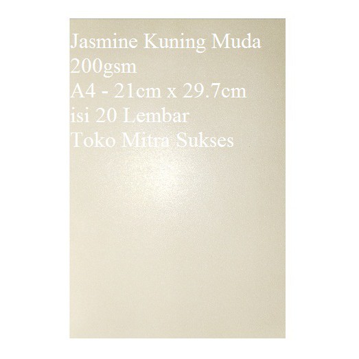 Kertas Jasmine adalah Kertas yang memiliki glitter di kedua sisi, terlihat eklusif dan mewah, sangat cocok digunakan sebagai media cetak kartu nama, Kartu Undangan, katalog, papercraft, kalender, dan lain sebagainya.
