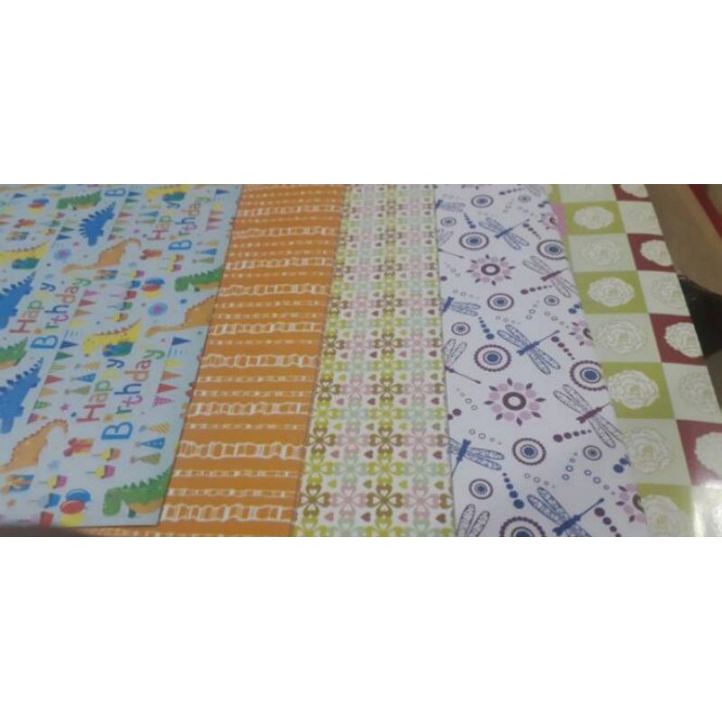 NB : Hanya menyediakan jasa bungkus barang online shop/kado. Bukan untuk pembelian setiap lembar kertas kado. Dan gambar di atas hanyalah salah satu contoh gambar warna netral dan motif random sesuai stok yg tersedia.