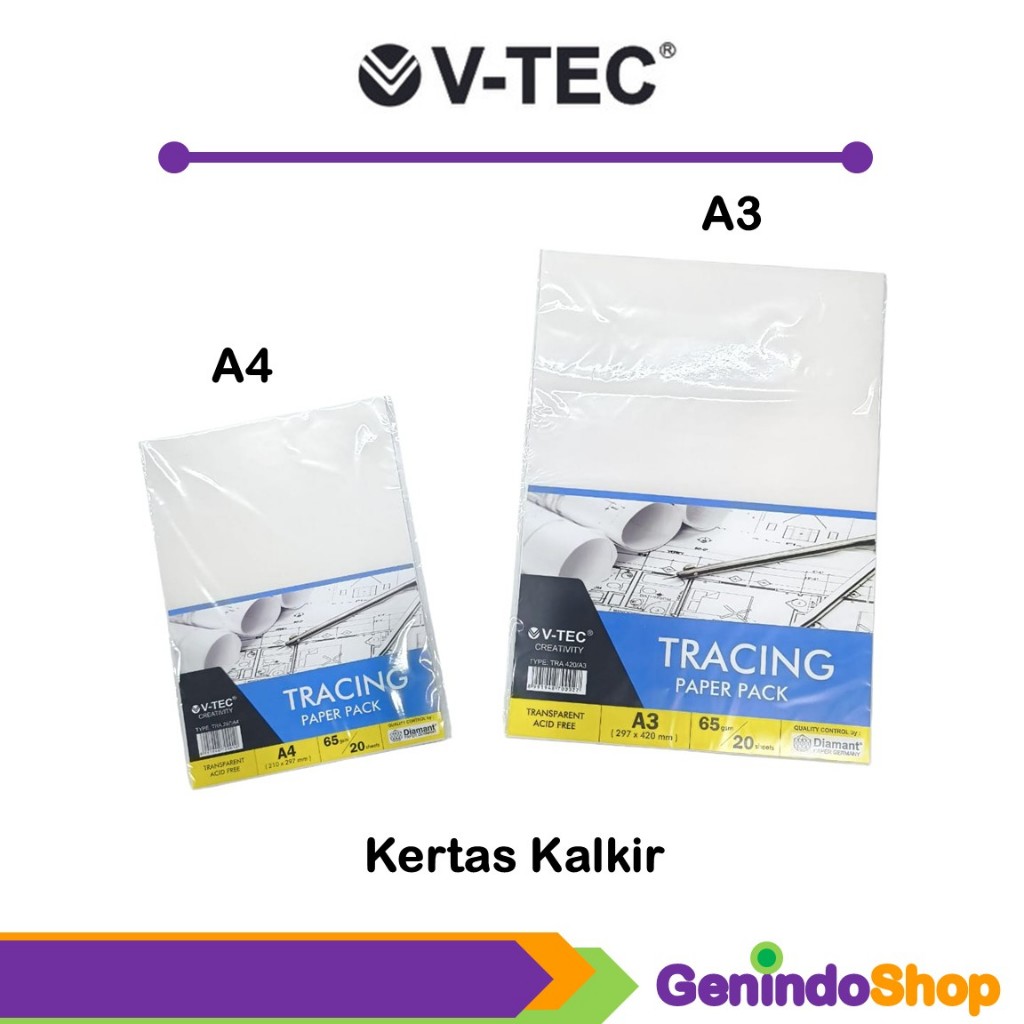 Kertas Kalkir A4 dan A4 / Tracking Paper Pack 20 Pcs V-tec
