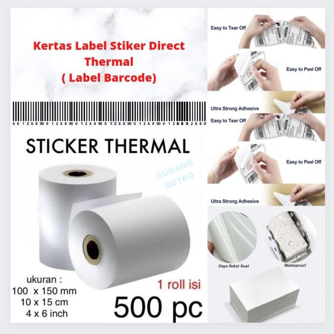 Kertas Sticker Label Thermal Direct Barcode A6 (Ukuran Standard Resi MarketPlace)