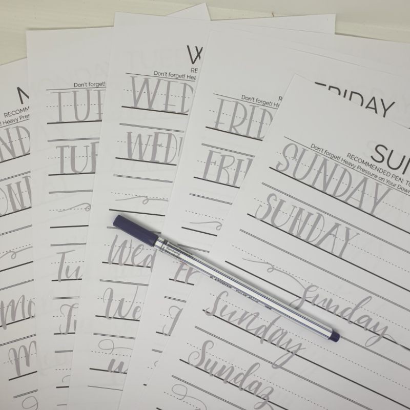 Kertas Latihan Calligraphy Hand Lettering "Days" & "Months" // Dimino