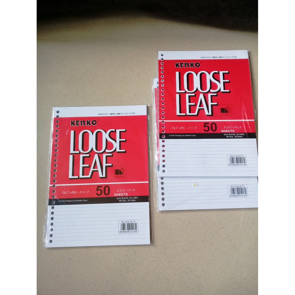 Kertas Loose Leaft dengan kualitas bahan yang baik, tebal, aman dan nyaman dipakai. Kertas menggunakan HVS 80gram dengan jumlah 50 lembar serta bergaris 36 lines. Kertas ukuran B5 cocok untuk Binter yang mempunyai 26 lubang.