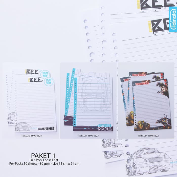 Kertas Note - Isi Kertas Binder - Kertas File Transformers Paket Loose Leaf M Adinata (Isi 3 Pack) /