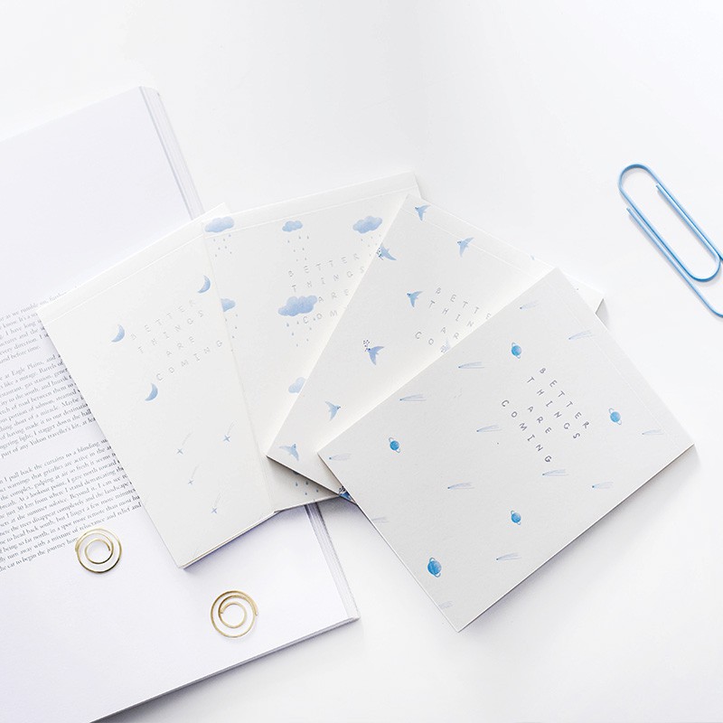 Buku kecil berisi kertas memo polos dengan gambar ilustrasi awan, burung, bulan dan planet. Gunakan untuk mencatat pesan-pesan singkat. Ukurannya yang kecil dan praktis membuatnya mudah di bawa kemana saja.