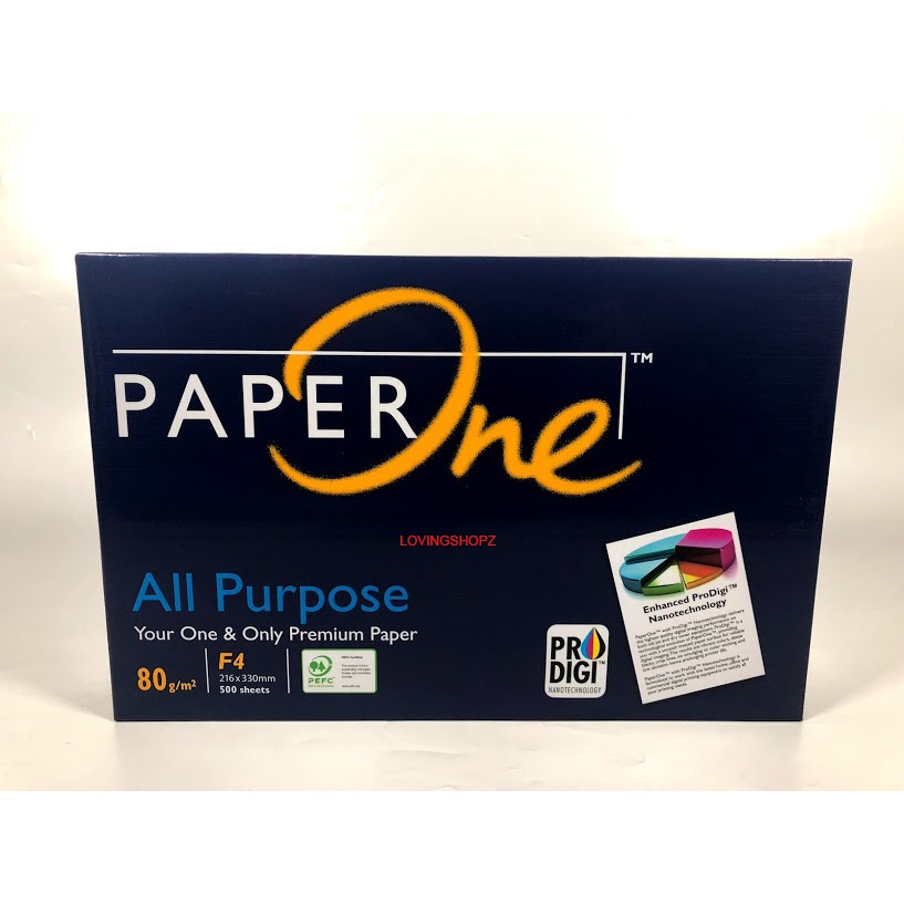 Kertas paper one F4 adalah kertas berkualitas premium untuk semua mesin cetak dan copy yang digunakan di rumah dan perkantoran dan didesain untuk menyesuaikan semua jenis peralatan yang menggunakan prinsip inkjet dan xerografis.