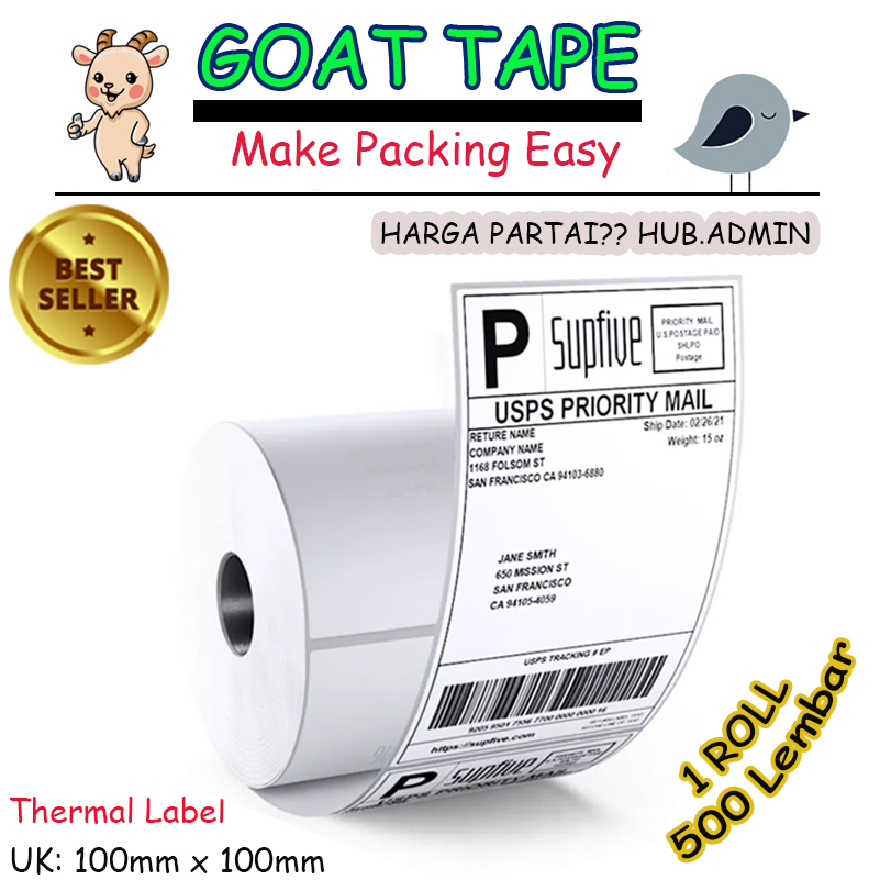 Kertas Sticker Label Thermal Barcode Resi 100x100 mm Isi 500 Pcs