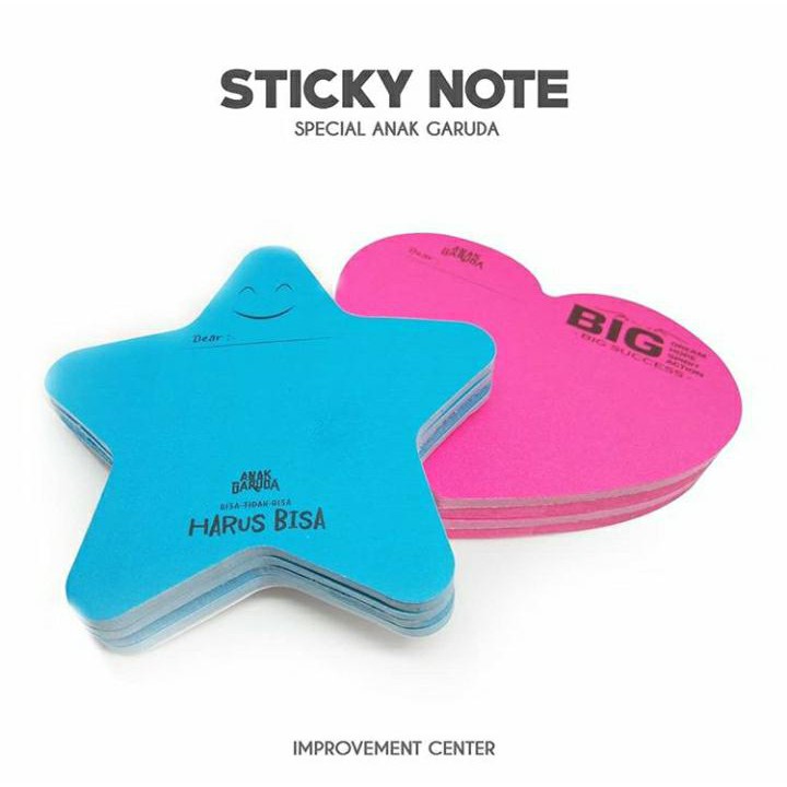 Sticky Note ( Kertas Tempel ) Special Anak Garuda adalah kertas catatan berbentuk hati dan bintang yang bisa ditempel dimana saja.