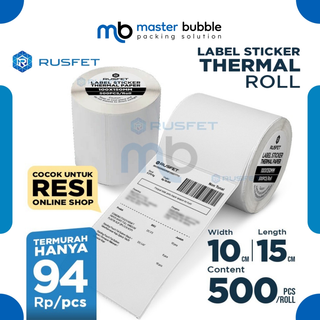 Cukup pakai Label Resi Thermal yang sudah ada sticker atau perekat kuat sehingga sangat hemat biaya dan hemat waktu. Kertas Struk Thermal yang biasa digunakan dalam Mobile Printer, Printer Bluetooth, Cash Register, Printer Kasir maupun Mesin EDC dan Mesin Parkir.