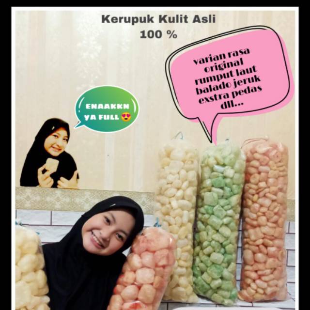 Kerupuk kulit terbuat dari kulit sapi pilihan.. saya olah dari mentah sampe jadi kerupuk jdi kerupuk di jamin halal dan rasa jg super enak... Ada beberapa parian berat dan rasa..