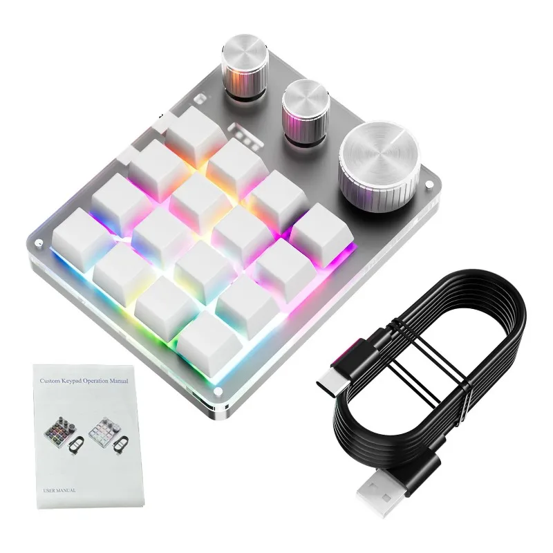 Keyboard 16-Keys 3 Knob Gaming with USB Wired+Bluetooth Mode Volume Controller