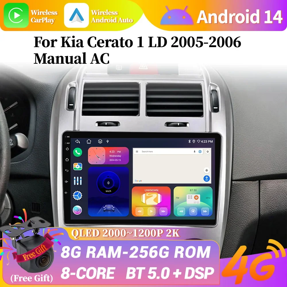 Для Kia Cerato 1 LD 2005-2006 Ручной автомобильный радиоприемник переменного тока Мультимедийный видеоплеер Навигация Android экран для автомобиля 4G GPS Android14.0