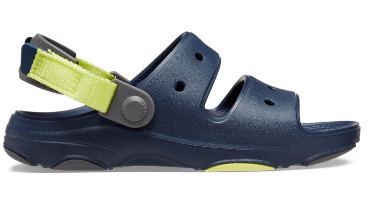 Travel. Exploration. Adventures near and far. The look and feel of our Classic Kids' All-Terrain Clog, now in sandal form. The rugged tread pattern and rubber pods add traction and support, while the two-strap upper and adjustable turbo backstraps work to keep up with their outdoorsy lifestyle. Seven holes in each sandal allow for personalization with Jibbitz™ charms and a lightweight Croslite™ foam construction makes them a practical choice for any outing. Flip that strap back and go wild. Kids' All-Terrain Sandal Details: Two-strap upper Adjustable turbo heel straps for a snug, accommodating fit Rugged lug outsoles with enhanced tread for increased traction and support Fully molded Croslite™ foam uppers Easy to clean and quick to dry Customizable with Jibbitz™ charms Iconic Crocs Comfort™: Lightweight. Flexible. 360-degree comfort.