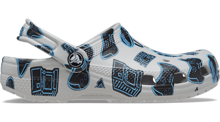 Easy on, easy off! Just like the adult Classic, the kids’ version offers amazing comfort and support, thanks to the light, durable Croslite™ material and molded design. Kids can customize their Crocs™ clog however they like; ventilation holes accommodate Jibbitz™ brand charms. Kids' Classic Game Over Clog Details: Video game graphics Pivoting heel straps for a more secure fit Easy to clean Customizable with Jibbitz™ charms Iconic Crocs Comfort™: Lightweight. Flexible. 360-degree comfort.