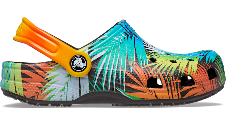 Iconic Crocs comfort combines with lively summer graphics in the Kids’ Classic Pool Party Clog. Show off a fun, beach-themed vibe while enjoying the iconic comfort and do-it-all style that you’re sure to fall deeper in love with day after day. Available in four vibrant prints: Pineapple, Palm Tree, Flamingo or Shark. Kids' Classic Pool Party Clog Details: Fun, summery graphics on the uppers Incredibly light and fun to wear Ventilation ports add breathability and help shed water and debris Easy to clean and quick to dry Pivoting heel straps for a more secure fit Customizable with Jibbitz charms Iconic Crocs Comfort: Lightweight. Flexible. 360-degree comfort.
