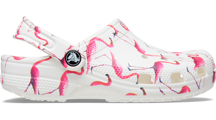 Iconic Crocs comfort combines with lively summer graphics in the Kids’ Classic Pool Party Clog. Show off a fun, beach-themed vibe while enjoying the iconic comfort and do-it-all style that you’re sure to fall deeper in love with day after day. Available in four vibrant prints: Pineapple, Palm Tree, Flamingo or Shark. Kids' Classic Pool Party Clog Details: Fun, summery graphics on the uppers Incredibly light and fun to wear Ventilation ports add breathability and help shed water and debris Easy to clean and quick to dry Pivoting heel straps for a more secure fit Customizable with Jibbitz charms Iconic Crocs Comfort: Lightweight. Flexible. 360-degree comfort.