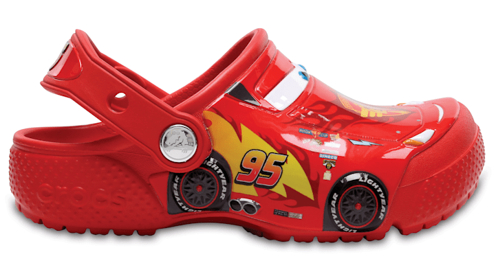 Real Fun Shoes For Real Fun KidsBoys and girls, start your engines! Crocs Fun Lab is back with another spin on the legendary Cars Clog to keep the little speedsters in the family on track, lap after lap. All of the comfort and support of a daily driver is here — this clog is light, easy to wear, quick to dry and cushiony thanks to the legendary Croslite™ foam construction. See you at the next pit-stop! Kids’ Crocs Fun Lab Disney and Pixar Cars Clog Details: Easy to clean, quick to dry Contoured footbeds for comfort Toe box ventilation keeps feet cool Molded Croslite™ foam construction makes them incredibly light Iconic Crocs Comfort™: Lightweight. Flexible. 360-degree comfort. © Disney/Pixar