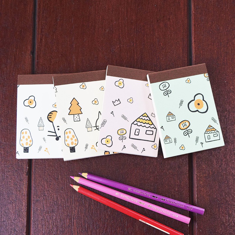 Buku tulis dengan sampul bertemakan gambar-gambar yang lucu Didalamnya berisi kertas polos berwarna putih gading. Ukurannya yang kecil membuatnya praktis dibawa ke manapun. Gunakan untuk menulis catatan singkat atau sekedar corat-coret.