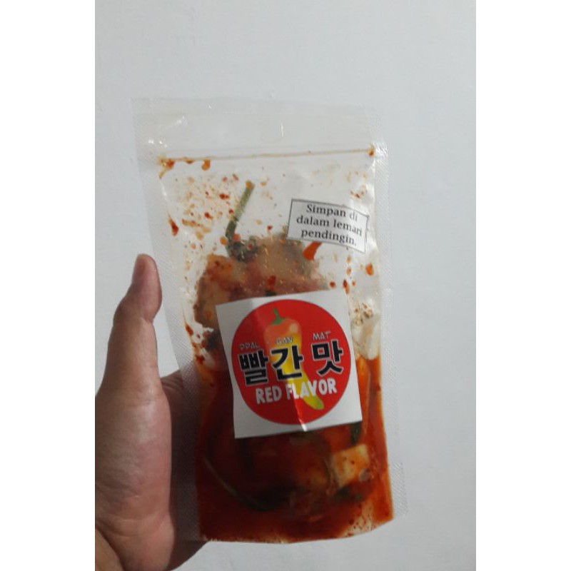 Fermentasi sawi putih dengan racikan bumbu khas korea.