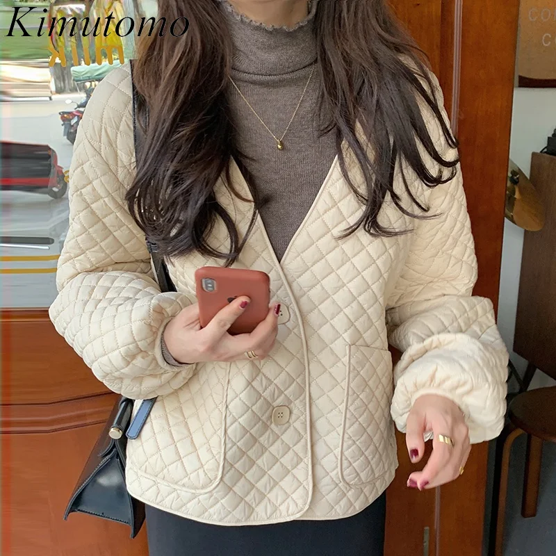 Kimutomo шикарная мягкая Женская Осенняя новая свободная короткая куртка в стиле ретро с V-образным вырезом и рельефным рисунком