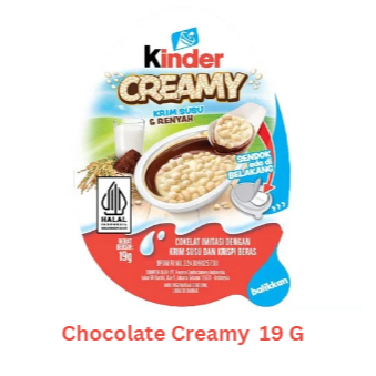 Kinderjoy Creamy cemilan coklat susu dengan perpaduan crispy rice dan krim lembut yang mengandung vitamin B12 dan krim coklat lezat kemasasan 19 gr