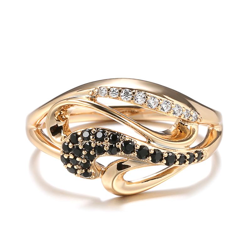 Kinel уникальное кольцо с черным цирконом и крестом для женщин, ювелирные изделия цвета розового золота 8 розового золота