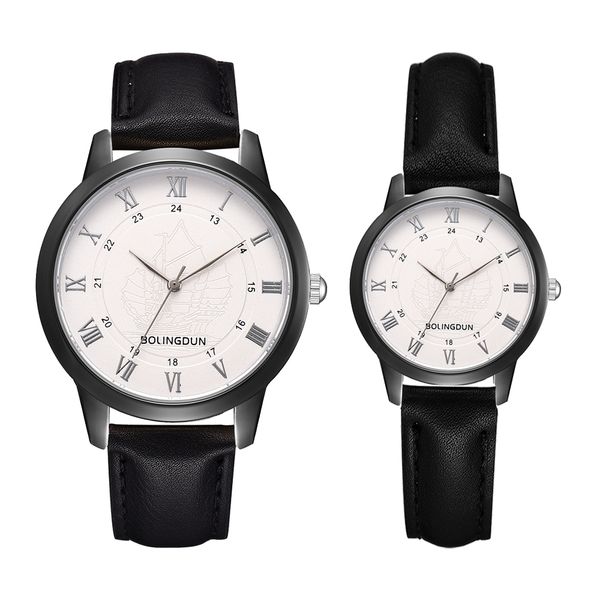 2 pcs set woman mens retro design leather band analog quartz wrist watch 2019 new arrival ladies casual bracelet couple watches, Slivery;brown