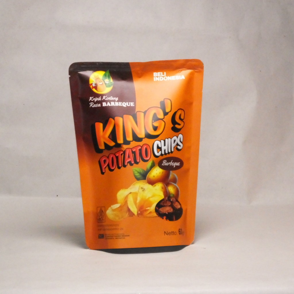 Nikmati renyahnya kentang pilihan dalam setiap keping Kings Potato Chips Rasa Barbeque! Dipadu dengan bumbu barbeque khas yang smoky dan gurih, camilan ini siap memanjakan lidahmu dengan cita rasa ala panggangan yang menggoda.