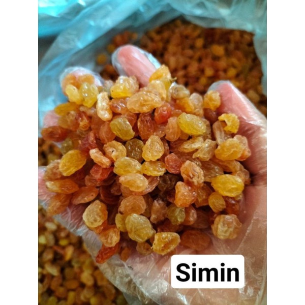 Warna kismis simin ini kuning. Rasa dari kismis simin manis segar.