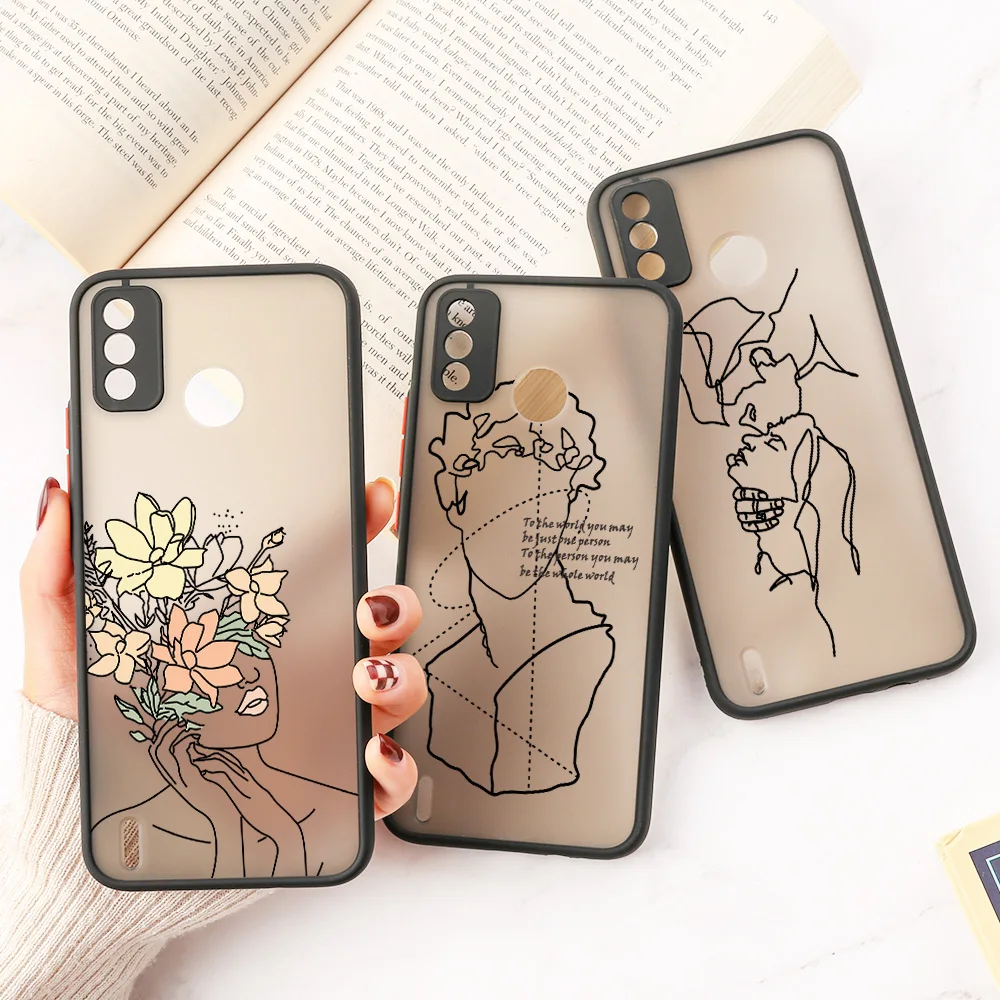 Kiss Line Drawing Phone Case For Tecno Spark 6 Case Tecno Spark Go 2022 4 Air 3 Pro Camon 11 12 Air Shockproof Flower Hard Funda