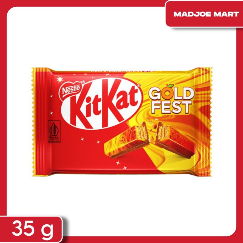 KitKat Gold Fest 35 g Cokelat persembahan Kit Kat yang hadir dengan varian rasa gold. Citarasanya unik di lidah dan disukai terutama bagi para pecinta rasa coklat. Hadir dengan kemasan 35 gram, sehingga praktis untuk dibawa kemanapun dan dinikmati kapan saja. Dapatkan Kit Kat 35 g di sini!