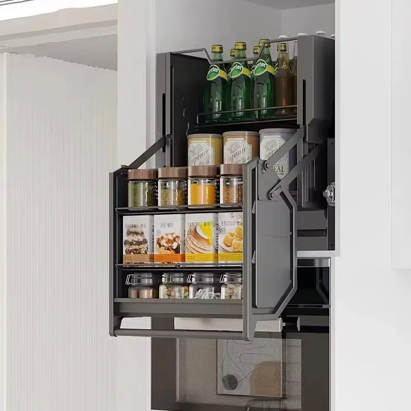 Kitchen Cabinet Double-layer Pull-down Basket Pull-out Lifting Spice Basket Soft Closed Lifting Storage Rack Storage Rack