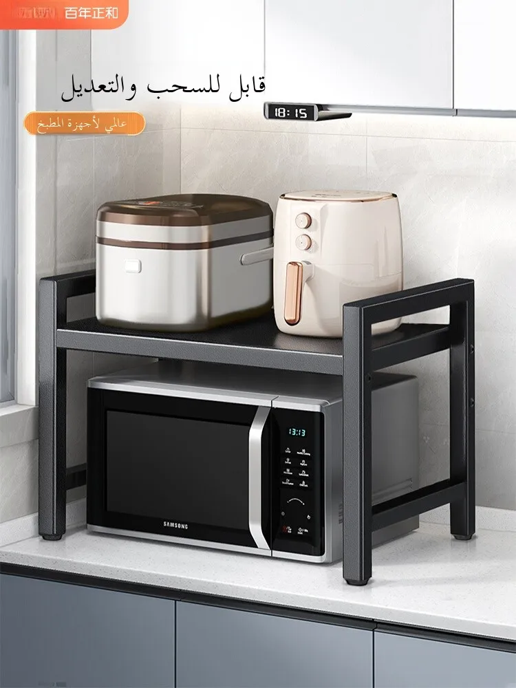 Kitchen Microwave Double Layer Expandable Storage Ra Home Use Oven Stand Countertop Rice Cooker Organizer Metal Material