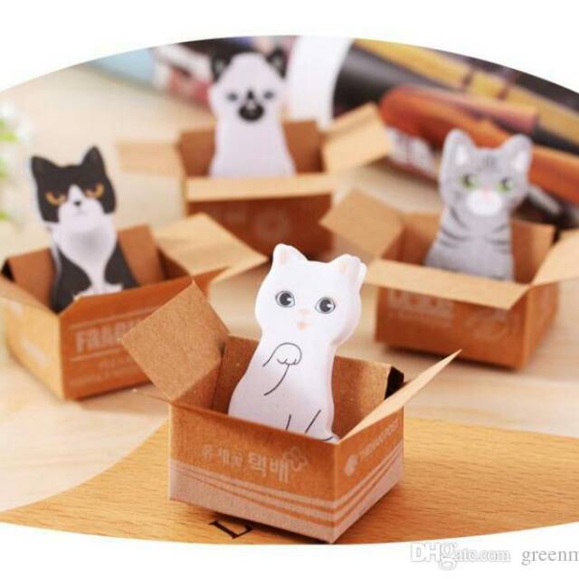 Post-it unik berbentuk kucing lucu di dalam box yang bisa kamu rakit sendiri.