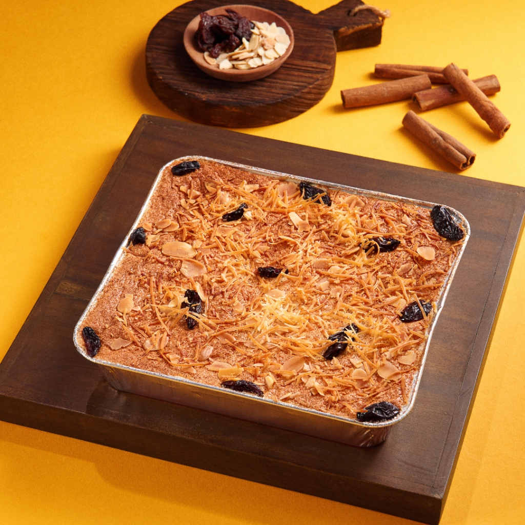 -Topping taburan almond panggang, kismis, dan bubuk kayu manis.