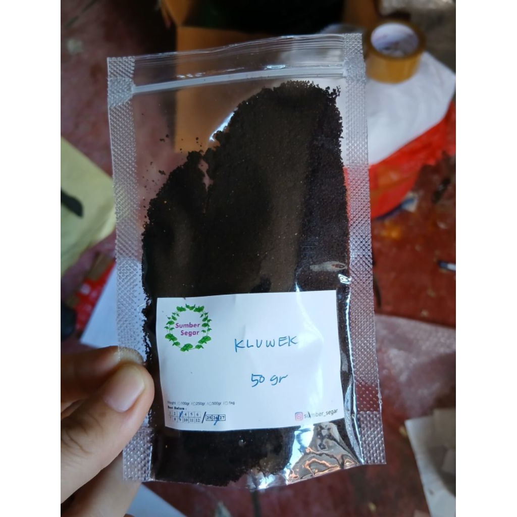 100% kluwek , alami murni yang diolah tanpa tambahan bahan kimia, pengawet, pewarna, maupun MSG.