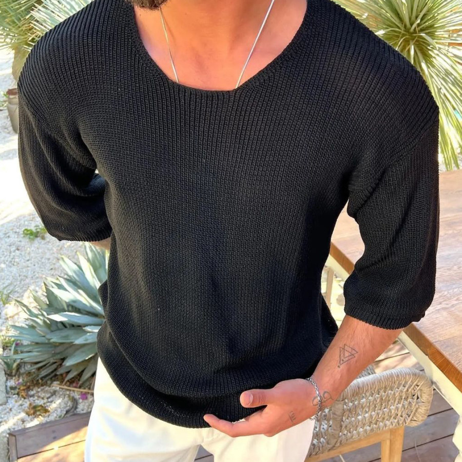 Knitted Wool 3/4 Sleeve Solid T-Shirt