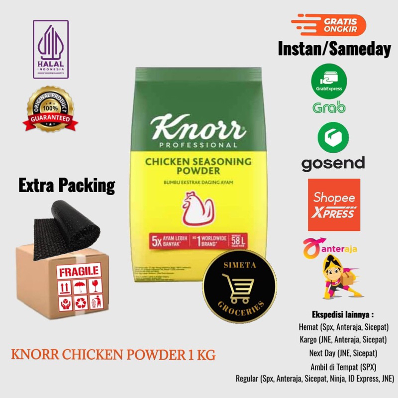 knorr chicken powder terbuat dari bahan berkualitas yang sama dengan kaldu ayam asli. dengan lima kali lebih banyak daging ayam asri serta meningkatkan rasa Gurih tanpa menutupi rasa asli masakan Anda.