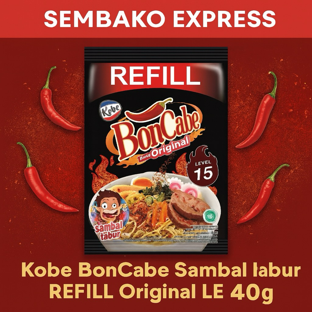 BonCabe Refill Level 15 rasa original adalah sambal tabur legendaris dengan tingkat kepedasan yang menggigit. Cocok untuk pecinta pedas sejati, BonCabe ini hadir dalam kemasan refill isi 40 gram yang praktis dan ekonomis. Terbuat dari cabai pilihan yang dikeringkan dan dibumbui secara khusus, cocok ditaburkan di atas nasi, mie, gorengan, atau camilan favorit. Produk asli dari Kobe yang sudah bersertifikasi halal.