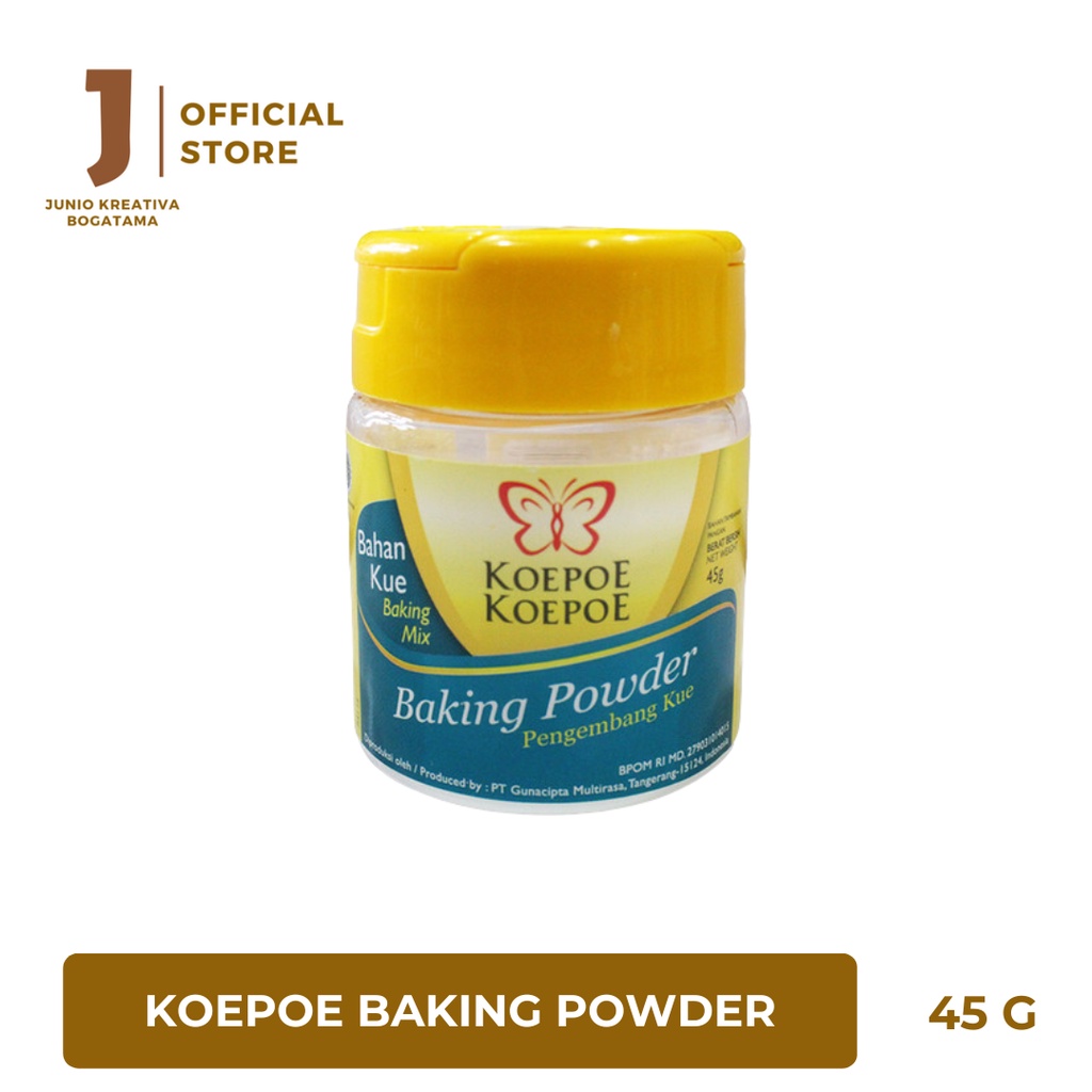 Baking Powder cap koepoe koepoe digunakan untuk mengembangkan berbagai macam adonan kue, bolu, roti, dll. Pada umumnya baking powder koepoe koepoe digunakan 2-4% dari berat tepung pada satu resep cookies atau 1/2 sdt utk 500gr adonan.
