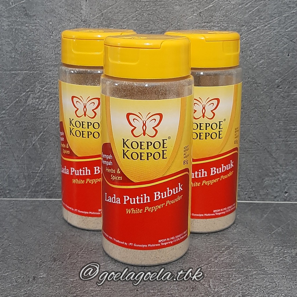 KOEPOE-KOEPOE Lada Putih Bubuk merupakan lada putih berbentuk bubuk yang terbuat dari lada putih asli dan berkualitas. Diolah menggunakan teknologi modern sehingga terjaga keaslian dan kebersihannya. Cocok digunakan untuk campuran bumbu masakan.