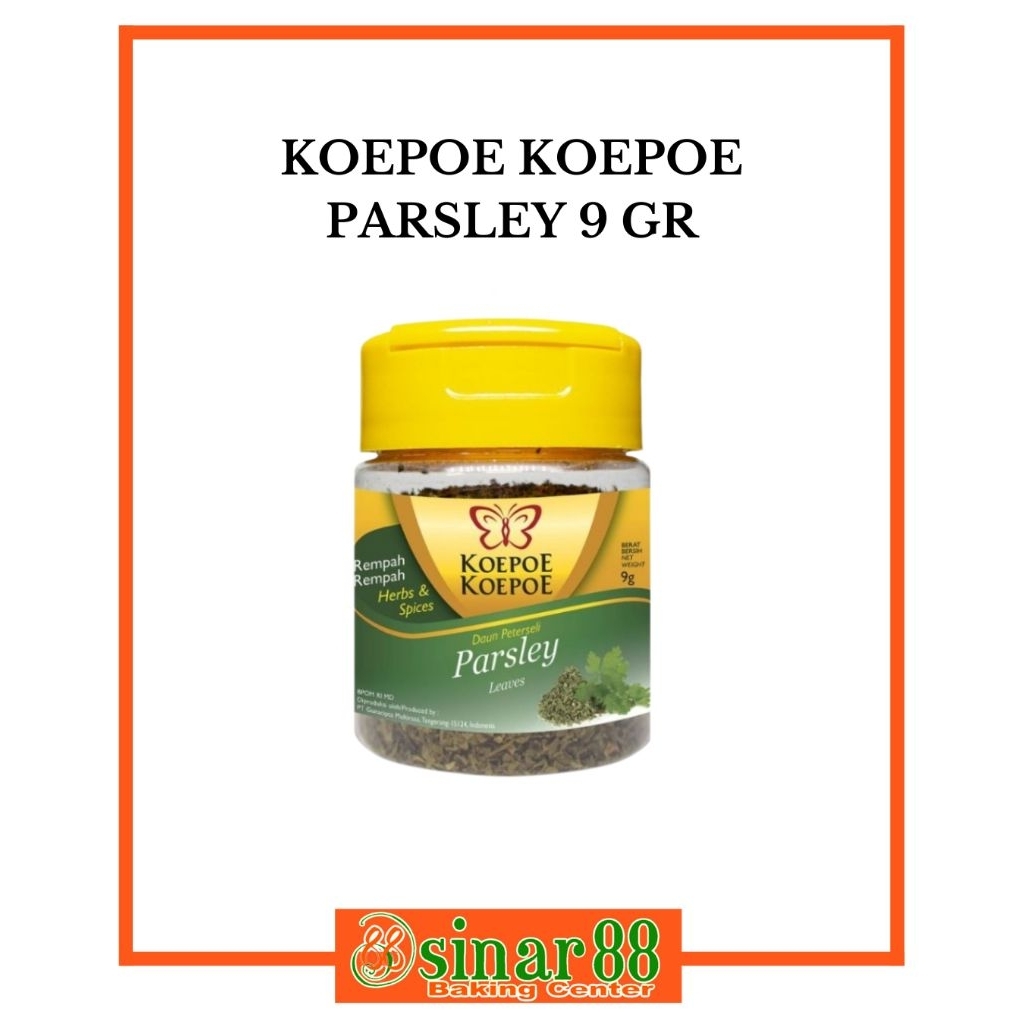 Koepoe-Koepoe Parsley, baik dalam bentuk bubuk maupun daun kering, berfungsi sebagai penyedap dan pengharum masakan, serta dapat digunakan sebagai garnish. Daun parsley dari Koepoe-Koepoe memberikan aroma segar dan rasa khas pada berbagai hidangan seperti sup, pasta, salad, dan hidangan daging. Selain itu, parsley juga memiliki manfaat kesehatan seperti menjaga kesehatan mata dan jantung. Berikut adalah beberapa fungsi dan manfaat Koepoe-Koepoe Parsley: Penyedap dan pengharum masakan: Parsley, baik bubuk maupun daun kering, dapat menambah aroma dan cita rasa pada berbagai hidangan. Garnish: Daun parsley sering digunakan sebagai hiasan makanan untuk menambah tampilan yang lebih menarik. >>!nav