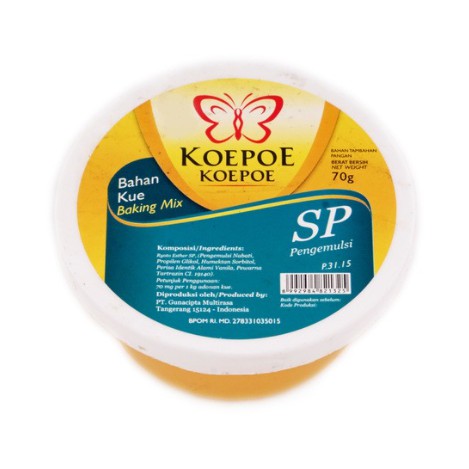 Koepoe Koepoe SP Bahan Kue [70 g] merupakan bahan berkualitas, tambahan pangan untuk penguat aroma bisa di aplikasikan ke pada roti, kue, maksimal penggunaan pada makanan maksimal 0.68 %. Sudah terdaftar di BPOM dan tersertifikasi halal.
